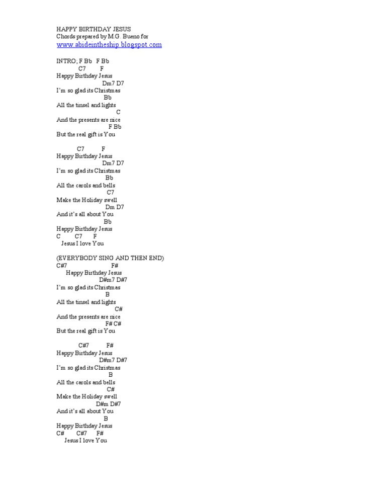 Verse F Happy birthday Jesus Dm Im so glad its Christmas Bb All the tinsel and lights C And the presents are nice Am Bb But the real gift is You Verse F Happy birthday Jesus Dm Im so glad. Hail Thou Source Of Every Blessing. Hail To The Lords Anointed.
